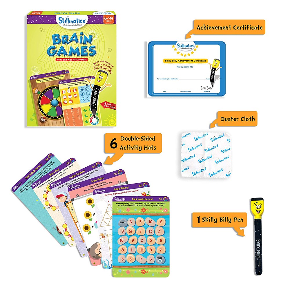 Skillmatics Educational Game: Brain Games (6-99 Years) / Erasable and Reusable Activity Mats / Toy w