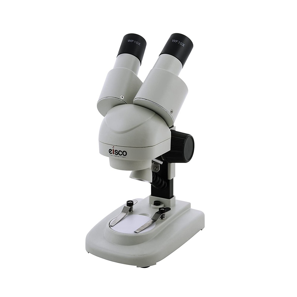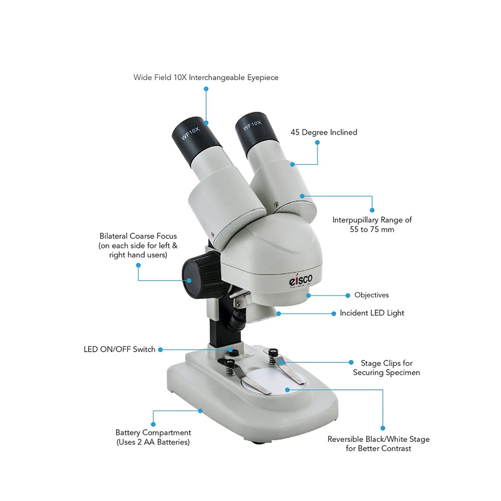 EISCO Stereo Binocular Microscope With Inclined Head, LED Light, Reversible Black and White Stage